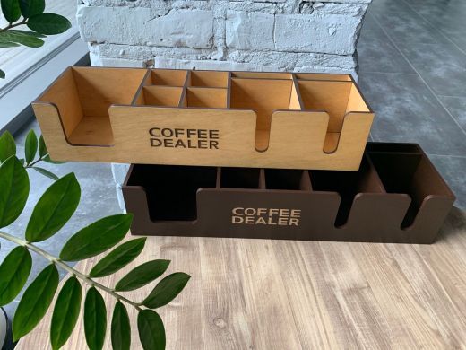 У нас имеется большая база макетов и вариаций органайзеров из дерева, но мы также выполняем заказы по вашим макетам